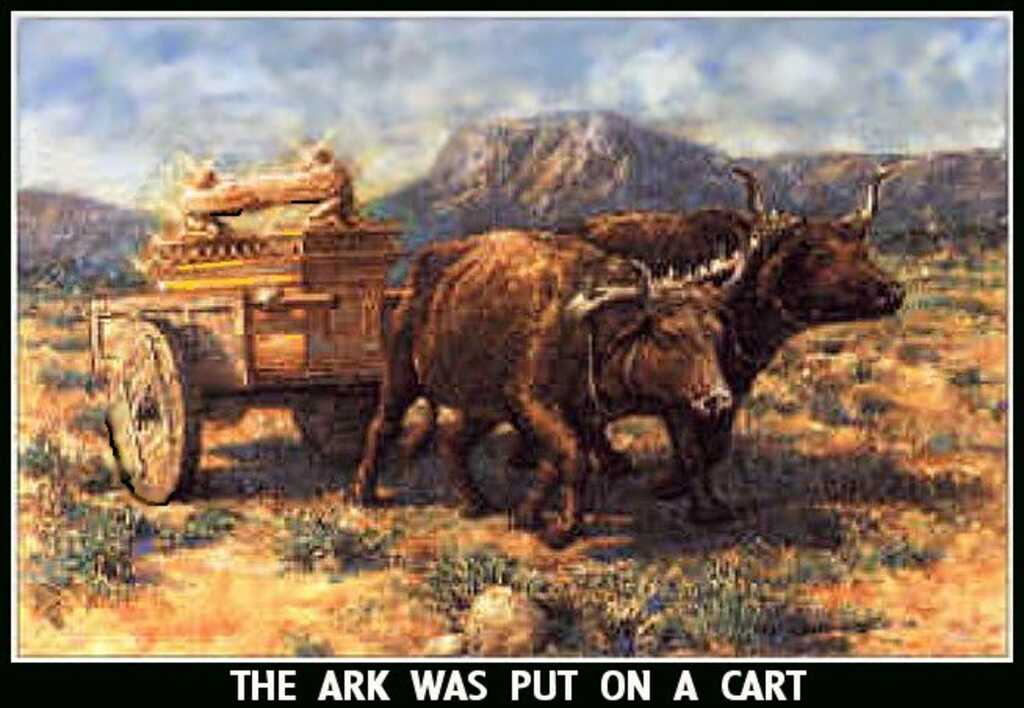 The Jews ignore God’s Word and improperly transport God’s holy ark on a cart. In their haste to transport the ark, the Jews decided to transport the ark in a cart: “6 David and all Israel went up to Baalah, that is, to Kiriath-jearim, which belongs to Judah, to bring up from there the ark of God, the Lord who is enthroned above the cherubim, where His name is called. 7 They carried the ark of God on a new cart from the house of Abinadab, and Uzza and Ahio drove the cart.” (1 Chr. 13:6-7; 2 Sam. 6:2-4). In the similar account of this incident, “Ahio was walking ahead of the ark.” (2 Sam. 6:4). Under either account, the Jews should not have used a cart with animals to transport the holy ark.