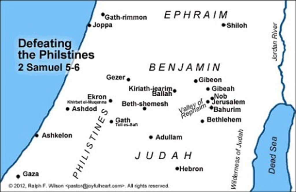 God blessed David with everything he needed to succeed as king. As evidence of God’s blessings, a king in modern Lebanon submitted to David. David showed himself to be God’s servant by giving Him the credit: “1 Now Hiram king of Tyre sent messengers to David with cedar trees, masons and carpenters, to build a house for him. 2 And David realized that the Lord had established him as king over Israel, and that his kingdom was highly exalted, for the sake of His people Israel.” (1 Chr. 14:1-2; 2 Sam. 5:11-12). God previously allocated the city of Tyre in Southern Lebanon as part of the inheritance of the tribe of Asher and as the northern border of the Promised Land: “The border turned to Ramah and to the fortified city of Tyre; . . .” (Josh. 19:29). The Jews had shown a lack of faith to claim this territory. Yet, even though the Jews were unfaithful, God remained faithful to His promises by giving this territory to David. David realized that God had blessed him with all of the resources that he would need to unify the nation for God.