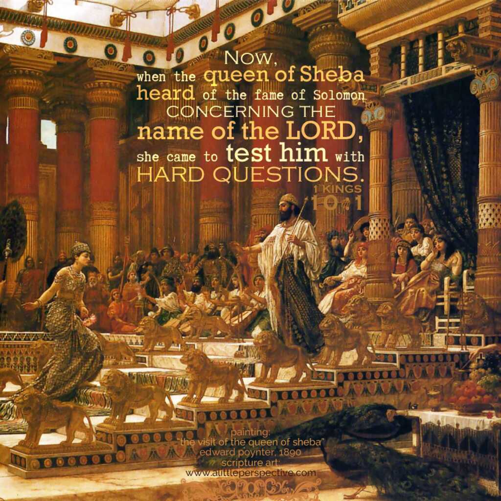 The Queen of Sheba tests Solomon’s wisdom1