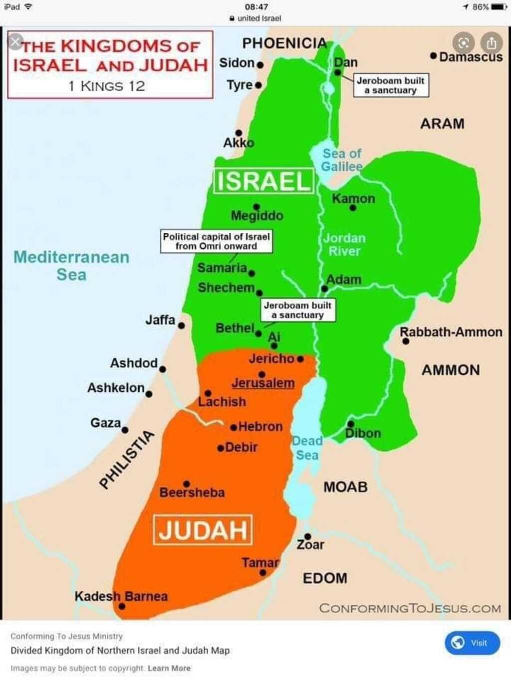 King Rehoboam failed to re-unite the broken nation through brutal force. Despite knowing that the division of Israel was God’s punishment for Solomon’s idolatry, Rehoboam failed to lead the nation into repentance. Instead, he tried and failed to stop God’s prophesy from coming true by using of his army to brutally impose his will: “21 Now when Rehoboam had come to Jerusalem, he assembled all the house of Judah and the tribe of Benjamin, 180,000 chosen men who were warriors, to fight against the house of Israel to restore the kingdom to Rehoboam the son of Solomon. 22 But the word of God came to Shemaiah the man of God, saying, 23 ‘Speak to Rehoboam the son of Solomon, king of Judah, and to all the house of Judah and Benjamin and to the rest of the people, saying, 24 ‘Thus says the Lord, ‘You must not go up and fight against your relatives the sons of Israel; return every man to his house, for this thing has come from Me.’’’ So they listened to the word of the Lord, and returned and went their way according to the word of the Lord.” (1 Kgs. 12:21-24). In response to his pride, God reduced Rehoboam’s nation from 12 mighty tribes to just two. His kingdom would be limited to the territories of Judah and Benjamin, the two southern tribes (2 Chron. 11:3; 14:8). Simeon was previously given land in the southern section of Judah’s territory (Josh. 19:1-9). And the tribe of Benjamin was split between the two kingdoms. Elsewhere, we are told that Simeon also rejected Rehoboam and went north to join with the northern tribes (1 Chron. 12:23-25; 2 Chron. 15:9; 34:6). Thus, through his arrogance, Rehoboam lost 10 tribes. In birth order, these included: (1) Reuben, (2) Simeon, (3) Zebulun, (4) Issachar, (5) Dan, (6) Gad, (7) Asher, (8) Naphtali, (9) Manasseh, and (10) Ephraim. The tribe of Levi was originally scattered throughout all the lands to serve everyone (Josh. 21:1-42). Yet, Jeroboam refused to use them as priests. Thus, they soon migrated to Judah after Israel was divided (2 Chron. 11:13-16).