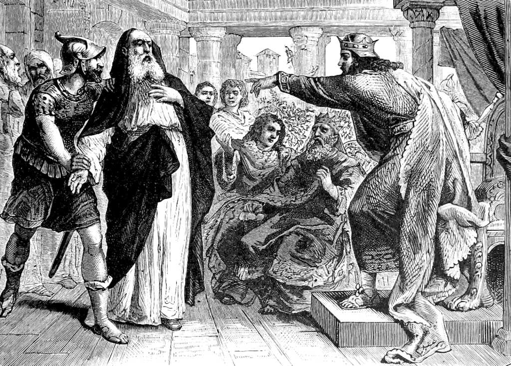 • Ahab imprisons Micaiah and subjects him to harsh treatment for foretelling defeat. Because their hearts were evil, a false prophet struck Micaiah, and Ahab threw him into prison, where he was further mistreated: “24 Then Zedekiah the son of Chenaanah came near and struck Micaiah on the cheek and said, ‘How did the Spirit of the Lord pass from me to speak to you?’ 25 Micaiah said, ‘Behold, you shall see on that day when you enter an inner room to hide yourself.’ 26 Then the king of Israel said, ‘Take Micaiah and return him to Amon the governor of the city and to Joash the king’s son; 27 and say, ‘Thus says the king, ‘Put this man in prison and feed him sparingly with bread and water until I return safely.’’’ 28 Micaiah said, ‘If you indeed return safely the Lord has not spoken by me.’ And he said, ‘Listen, all you people.’” (1 Kgs. 22:24-28). Zedekiah accused Micaiah of lying when struck him (1 Kgs. 22:24). Ahab then sent him back to prison under a governor named Amon and his son Joash (1 Kgs. 22:267). In prison, Ahab had Micaiah abused further. Micaiah then stated that if Ahab returned in a victory, he could be killed in accordance with God’s law regarding false prophets (Dt. 18:21-22).