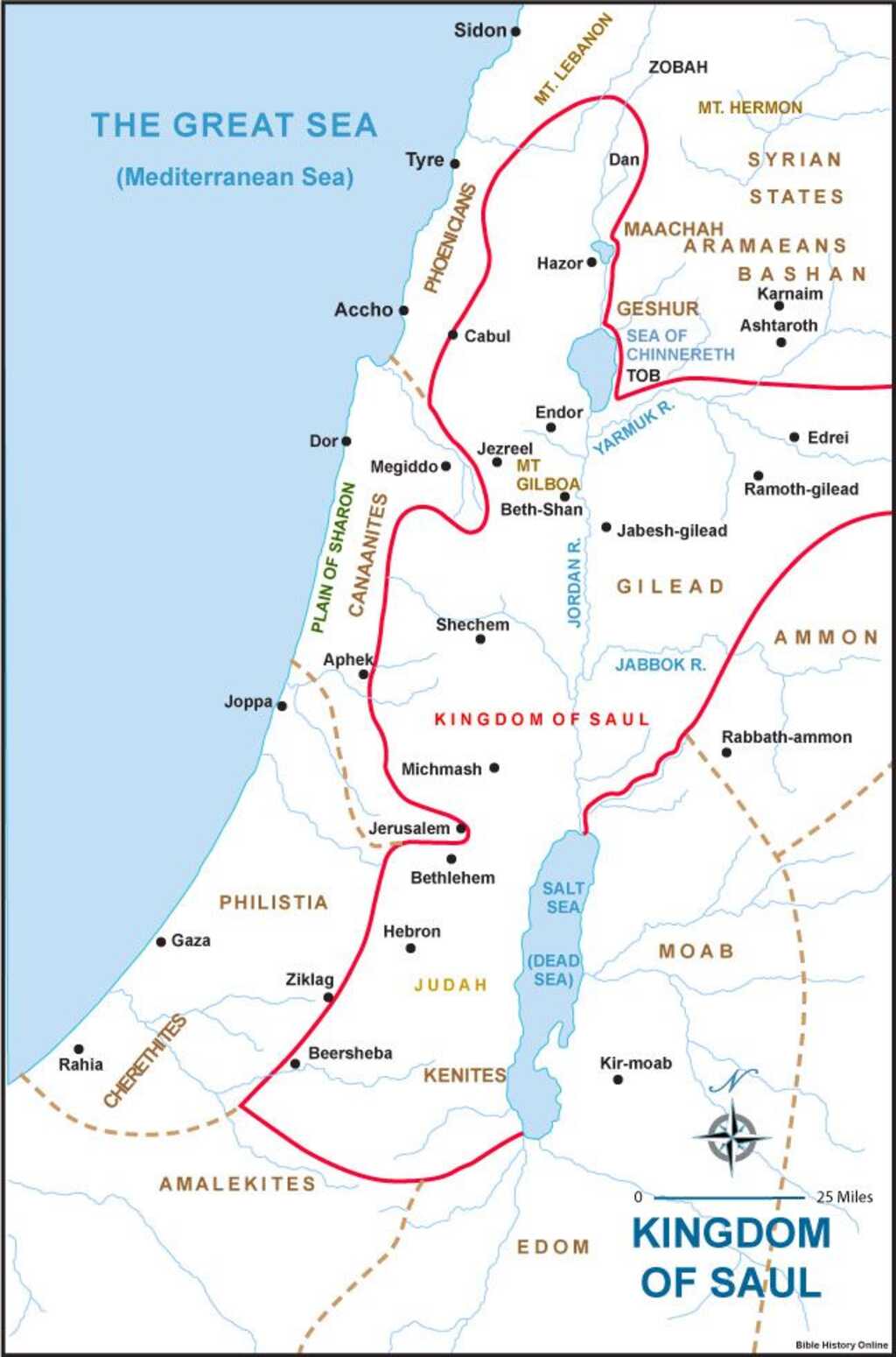Saul engages in war for his own glory. After God won this battle against the Philistines, Saul fought many wars. But he did not credit God. He also took away the Jews’ freedoms during these wars. “47 Now when Saul had taken the kingdom over Israel, he fought against all his enemies on every side, against Moab, the sons of Ammon, Edom, the kings of Zobah, and the Philistines; and wherever he turned, he inflicted punishment. 48 He acted valiantly and defeated the Amalekites, and delivered Israel from the hands of those who plundered them. 49 Now the sons of Saul were Jonathan and Ishvi and Malchi-shua; and the names of his two daughters were these: the name of the firstborn Merab and the name of the younger Michal. 50 The name of Saul’s wife was Ahinoam the daughter of Ahimaaz. And the name of the captain of his army was Abner the son of Ner, Saul’s uncle. 51 Kish was the father of Saul, and Ner the father of Abner was the son of Abiel. 52 Now the war against the Philistines was severe all the days of Saul; and when Saul saw any mighty man or any valiant man, he attached him to his staff.” (1 Sam. 14:47-52). Saul’s sons are stressed here to emphasize that the glory of Saul’s victories went toward building his dynasty. Samuel had previously prophesied that Saul would have no dynasty (1 Sam. 13:13-14). Saul was likely trying to prove this to be false.