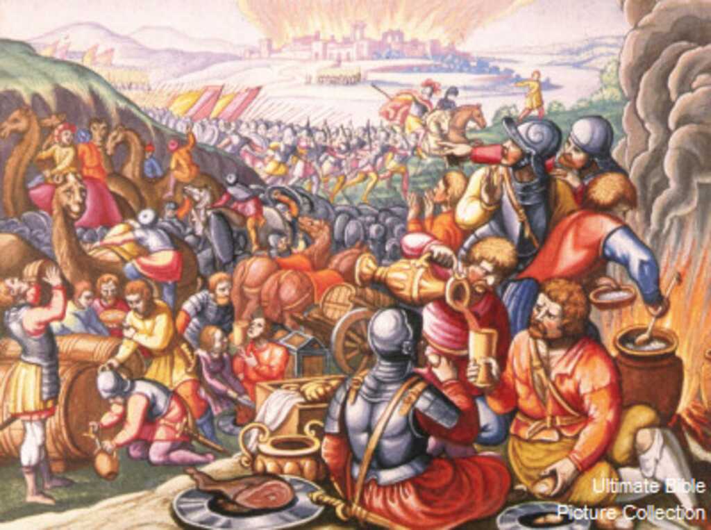 David fought the larger Amalekite army and recovered all that his men lost. David acted in faith in response to God’s directive, and his small army of 400 men defeated a much larger Amalekite army during their celebrations: “16 When he had brought him down, behold, they were spread over all the land, eating and drinking and dancing because of all the great spoil that they had taken from the land of the Philistines and from the land of Judah. 17 David slaughtered them from the twilight until the evening of the next day; and not a man of them escaped, except four hundred young men who rode on camels and fled. 18 So David recovered all that the Amalekites had taken, and rescued his two wives. 19 But nothing of theirs was missing, whether small or great, sons or daughters, spoil or anything that they had taken for themselves; David brought it all back. 20 So David had captured all the sheep and the cattle which the people drove ahead of the other livestock, and they said, ‘This is David’s spoil.’” (1 Sam. 30:16-20). After turning back to God, David asked God for direction. God promised that he would prevail and recover all that he lost (1 Sam. 30:6-8). Even though 200 of his men deserted him, David trusted God in faith and God helped David’s men to prevail. God brought David’s men to the Amalekite camp at a time when they drank and celebrated. They were also “spread over all the land,” instead of being grouped into a defensive formation. The Amalekites assumed that the Jews and the Philistines were far away fighting each other. David attacked them at dusk when most of the Amalekite men could have been hung over or sleeping. Despite their much larger numbers, they were no match for David’s men. The final reference to “David’s spoil” means that God blessed David with more than he lost.
