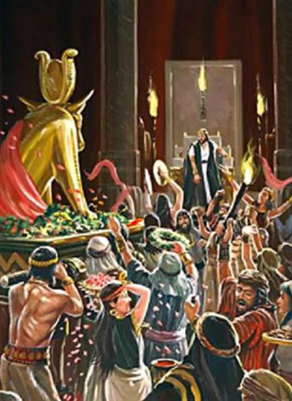 Ahaz also assumed the role of priest and performed pagan sacrifices. If the High Priest thought that he was preserving his job by obeying Ahaz, he was mistaken. Upon his return, Ahaz assumed the role of priest in performing the initial pagan sacrifices: “12 When the king came from Damascus, the king saw the altar; then the king approached the altar and went up to it, 13 and burned his burnt offering and his meal offering, and poured his drink offering and sprinkled the blood of his peace offerings on the altar. 14 The bronze altar, which was before the Lord, he brought from the front of the house, from between his altar and the house of the Lord, and he put it on the north side of his altar. 15 Then King Ahaz commanded Urijah the priest, saying, ‘Upon the great altar burn the morning burnt offering and the evening meal offering and the king’s burnt offering and his meal offering, with the burnt offering of all the people of the land and their meal offering and their drink offerings; and sprinkle on it all the blood of the burnt offering and all the blood of the sacrifice. But the bronze altar shall be for me to inquire by.’ 16 So Urijah the priest did according to all that King Ahaz commanded.” (2 Kgs. 16:12-16). By assuming the role of priest in the sacrifices, Ahaz acted like Jeroboam when he set up a fake religion in Northern Israel. Jeroboam also assumed the role of priest in performing sacrifices: “Jeroboam instituted a feast in the eighth month on the fifteenth day of the month, like the feast which is in Judah, and he went up to the altar; thus he did in Bethel, sacrificing to the calves which he had made. And he stationed in Bethel the priests of the high places which he had made.” (1 Kgs. 12:32). Both ignored God’s law that placed the duties of the priesthood with the Levites (Nu. 18:7). But while Jeroboam claimed to worship Yahweh with the aid of golden calves, Ahaz outdid him in his evil by worshiping the Assyrian idols. To make this new religion seem palatable, he included blood sacrifices, a peace offering, and a drink offering to make the counterfeit feel genuine (2 Kgs. 16:13). But his new pagan religion downplayed the atonement of sins. Thus, he moved the bronze altar used for the atonement of sins (2 Kgs. 16:14) that had sat undisturbed since Solomon dedicated it (1 Kgs. 8:22, 54, 64; 2 Chr. 4:1). Its new location symbolically downplayed the importance of atoning for sin. The fact that he used the bronze altar “to inquire by” (2 Kgs. 16:15) also suggests that the bronze altar had a new role for divination, which God strongly prohibited (Dt. 18:9-14). The High Priest again sadly obeyed King Ahaz’s evil directives (2 Kgs. 16:16).