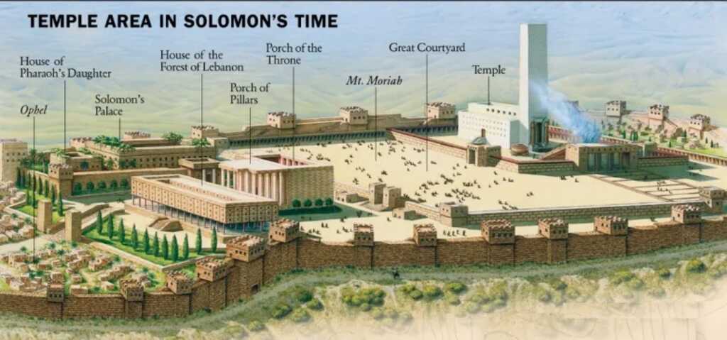 The court of the Temple. Access to the Holy of Holies required that a person pass through both the courtyard and bronze doors: “9 Then he made the court of the priests and the great court and doors for the court, and overlaid their doors with bronze. 10 He set the sea on the right side of the house toward the southeast.” (2 Chr. 4:9). These details again foreshadowed Jesus. He is both the narrow path and the door to salvation.