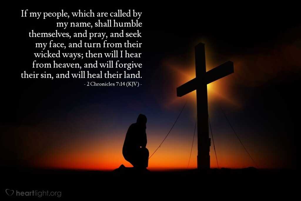 God’s promise to heal the nation remains today. The Church was meant to be God’s salt and light to guide the nations (Matt. 5:13-16). Thus, the Church should be leading the way for the nations to receive God’s healing and forgiveness. As one commentator explains, there are many examples throughout the Bible for how the nations should humble themselves, pray, seek God and turn to Him: “· We can see what it means to humble one’s self by looking at Rehoboam (2 Chronicles 12:6, 7, and 12), Hezekiah (2 Chronicles 30:11 and 32:26), and Manasseh (2 Chronicles 33:12, 19, and 23). · We can see what it means to pray by looking at Hezekiah (2 Chronicles 30:18 and 32:20) and Manasseh (2 Chronicles 33:13). · We can see what it means to seek by looking at the returning priests (2 Chronicles 11:16) and Jehoshaphat (2 Chronicles 20:3-4). · We can see what it means to turn by looking at Hezekiah (2 Chronicles 30:6 and 30:9).” (David Guzik on 2 Chronicles 7) (emphasis in original).5 Is your church praying for the nation and stepping forward to confront sin? If not, encourage it to be God’s salt and light.