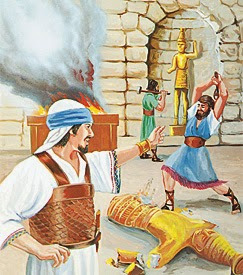 Jehoiada proclaims a new covenant with God and smashes the idols of Baal. Following Queen Athaliah’s execution, Jehoiada formed a new covenant between God and the future kings to ensure that Baal worship would never again be practiced in Judah: “17 Then Jehoiada made a covenant between the Lord and the king and the people, that they would be the Lord’s people, also between the king and the people. 18 All the people of the land went to the house of Baal, and tore it down; his altars and his images they broke in pieces thoroughly, and killed Mattan the priest of Baal before the altars. And the priest appointed officers over the house of the Lord.” (2 Kgs. 11:17-18). The covenant was supposed to be renewed with each king. For example, Josiah renewed the covenant during his righteous reign (2 Kgs. 23:1-3). As part of the covenant, the people also tore down all of the Baal temples that Athaliah had built during her reign. They also killed the high priest of Baal worship, Mattan. They also restored the holy things in the Temple that Athaliah stole for Baal worship (2 Chr. 24:7). Jehu completed a similar purge of Baal worship as a sanctioned religion in Northern Israel (2 Kgs. 10:18-29).