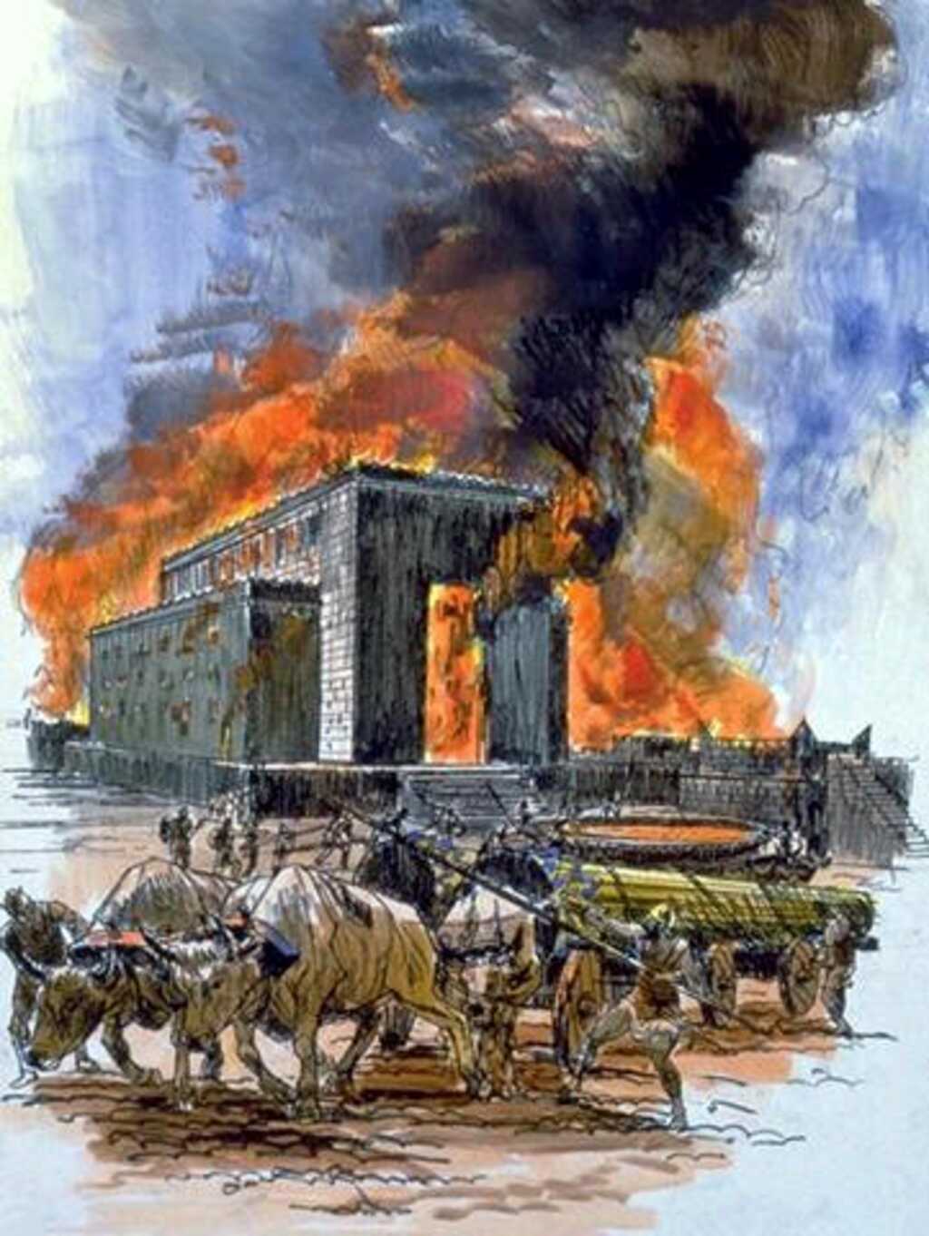 Nebuchadnezzar burned Jerusalem and deported its people. Also as part of God’s judgment upon the people of Judah, He allowed Nebuchadnezzar to burn Jerusalem, including God’s Temple, and deport the Jews to Babylonian captivity: “8 Now on the seventh day of the fifth month, which was the nineteenth year of King Nebuchadnezzar, king of Babylon, Nebuzaradan the captain of the guard, a servant of the king of Babylon, came to Jerusalem. 9 He burned the house of the Lord, the king’s house, and all the houses of Jerusalem; even every great house he burned with fire. 10 So all the army of the Chaldeans who were with the captain of the guard broke down the walls around Jerusalem. 11 Then the rest of the people who were left in the city and the deserters who had deserted to the king of Babylon and the rest of the people, Nebuzaradan the captain of the guard carried away into exile. 12 But the captain of the guard left some of the poorest of the land to be vinedressers and plowmen.” (2 Kgs. 25:8-12; 2 Chron. 36:17-19; Jer. 39:1-10; 52:1-23). Nebuchadnezzar burned the great buildings of the city, including God’s Temple. They then tore down the city’s walls. Nebuzaradan, the captain of the guards, then carried off the Jews into exile. He left behind only poor, unskilled laborers. They would be unable to launch a new revolt.