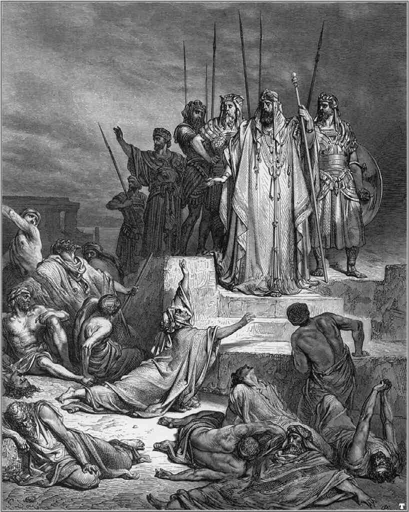 The fulfillment of God’s prophesy of judgment against Moab. The Moabites symbolized the flesh. They were the offspring of Moab, the eldest son in the incestuous union between Lot and his eldest daughter. Their son was named Moab (Gen. 19:36-37). God previously prohibited the Jews from encroaching upon Moabite territory because Abraham gave them their lands (Dt. 2:8-9). Yet, the Moabites abused God’s mercy and grace and instead embraced pagan idolatry. For this reason, God judged them: “Woe to you, O Moab! You are ruined, O people of Chemosh! He has given his sons as fugitives, and his daughters into captivity, to an Amorite king, Sihon.” (Nu. 21:29). King Balak of Moab hired a sorcerer named Balaam for the purpose of cursing the Jews (Nu. 22:1-5). God later prevented Balaam from cursing Israel (Nu. 23-24). Yet, Balaam still wanted to earn the pay that Balak offered him (Nu. 22:17). He also knew that the Moabites were too afraid to fight the Jews directly in battle (Nu. 22:3). He further knew that God was protecting His people (Nu. 23:8). Just like the devil, Balaam knew that the only way God’s people could be destroyed was if they voluntarily broke His Law. Having them join with temple prostitutes was one rule he figured he could induce them to break (Ex. 34:14-15; Dt. 23:17; Jdgs. 2:17; 1 Kgs. 14:22-24). Thus, he came up with a plan to have the Jews defile themselves with the Moabite and Midianite woman (Nu. 22:4). He instructed Balak to send his most attractive women to invite the Jewish men to Moabite banquets (Nu. 31:16). The women then seduced the men through acts of temple prostitution. The men would have had free sex with the prostitutes in exchange for their agreement to first eat foods sacrificed to Baal of Peor, the Canaanite fertility god, and then to worship him. Although Balaam caused many Jews to die from God’s judgment, he could not cause God to remove His protections over His people. Because of both the Moabites’ idolatry and their acts against the Jews, God revealed through a prophecy to Balaam that the Jews would eventually rule over the Moabites (Nu. 24:17). Yet, God delayed His judgment to give Moab a chance to repent. The Moabites, however, ignored God’s warnings. In addition to practicing idolatry, they continued to try to subjugate Israel. After the Jews invaded the Promised Land, King Eglon of Moab invaded Israel and enslaved the Jews for 18 years (Jdgs. 3:12-14). God then raised up a deliverer named Ehud. Ehud traveled to King Eglon under the pretext that he was delivering the Jews’ annual tribute to the Moabites. Ehud then killed King Eglon with a hidden dagger (Jdgs. 3:15-26). Through the example of Ehud’s faith, God granted the Jews victory over the Moabites (Jdgs. 3:29-30). God not only judged the Moabite king, He also judged all of Moab for its wickedness: “Woe to you, Moab! The people of Chemosh have perished; for your sons have been taken away captive and your daughters into captivity.” (Jer. 48:46). David later partially fulfilled God’s warning of judgment against the Moabites by conquering them (2 Sam. 8:2; 1 Chron. 18:2). Because the Moabites continued in their wicked ways, God used the Jews again in this war as His instrument of judgment.