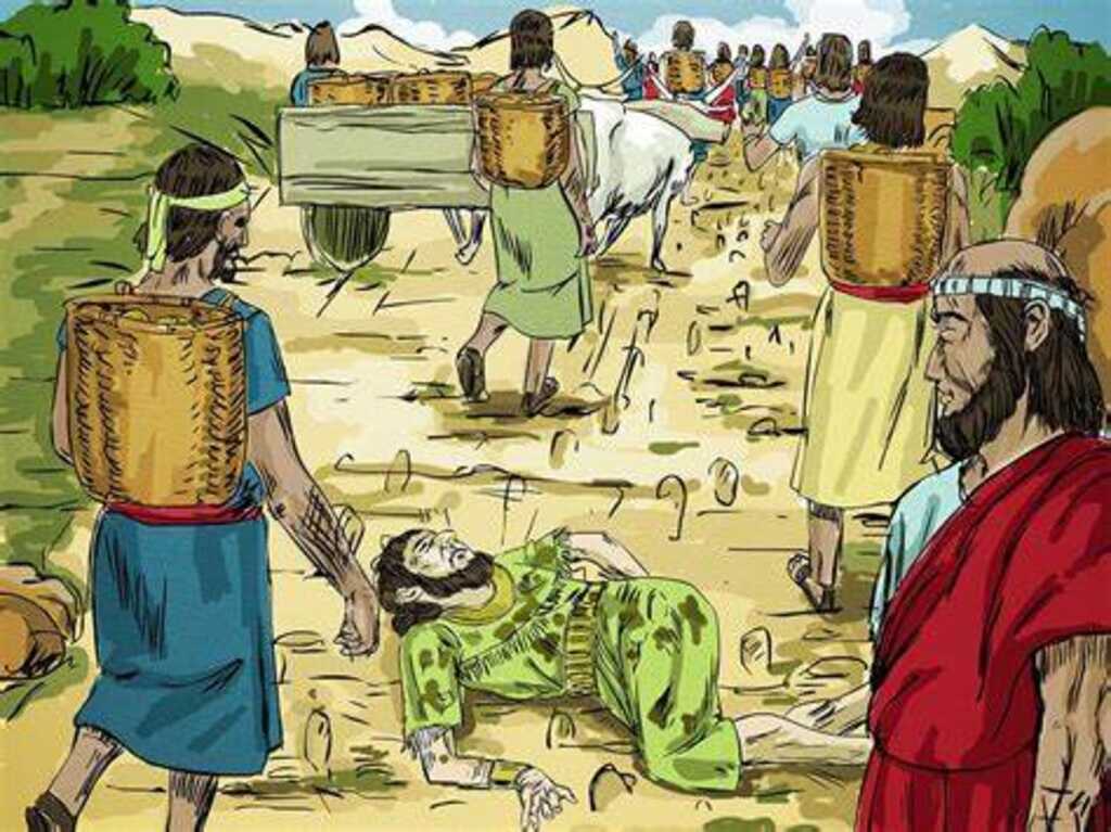Jesus came to minister first to the lowly, the humble, and the brokenhearted. The gifts given first to the lepers foreshadowed Jesus’ ministry to the poor and the oppressed: “the blind receive sight and the lame walk, the lepers are cleansed and the deaf hear, the dead are raised up, and the poor have the Gospel preached to them.” (Matt. 11:5; Lk. 7:22). “The Spirit of the Lord GOD is upon me, because the LORD has anointed me to bring good news to the afflicted; He has sent me to bind up the brokenhearted, to proclaim liberty to captives and freedom to prisoners;” (Is. 61:1; Lk. 4:18). “Your tackle hangs slack; it cannot hold the base of its mast firmly, nor spread out the sail. Then the prey of an abundant spoil will be divided; the lame will take the plunder.” (Is. 33:23). The abundant food and wealth that God gave lepers foreshadowed the abundant life that Jesus offers. “The thief comes only to steal and kill and destroy; I came that they may have life, and have it abundantly.” (Jo. 10:10). If you are in need, give your needs to Jesus.