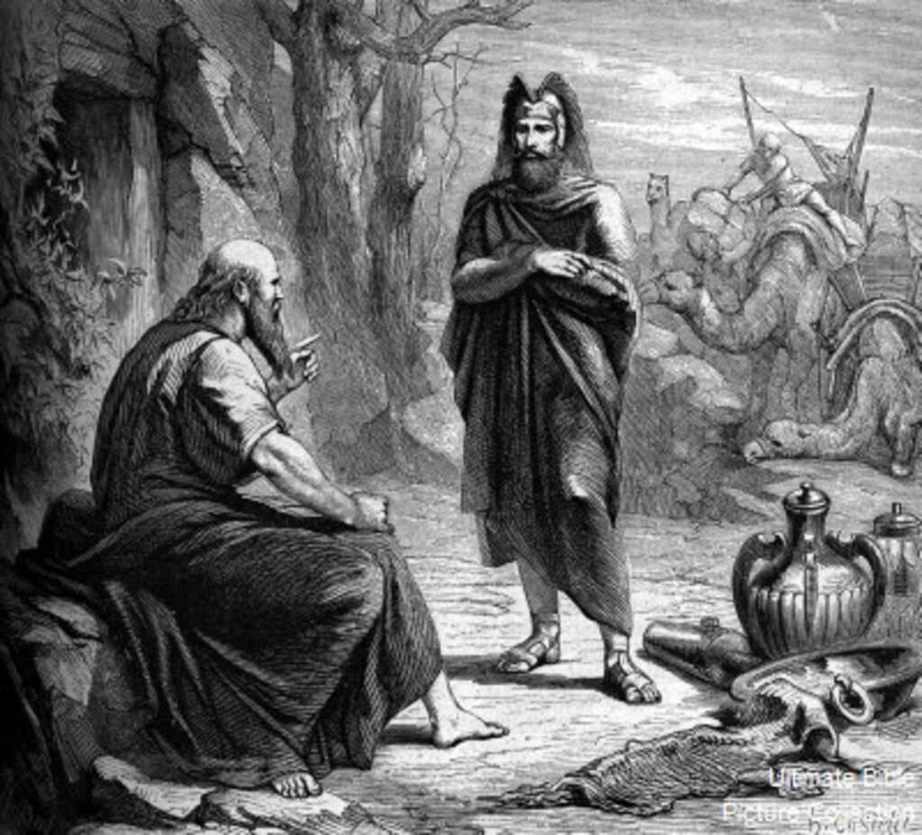 Hazael appears before Elisha with gifts, and Elisha gives him a prophecy3