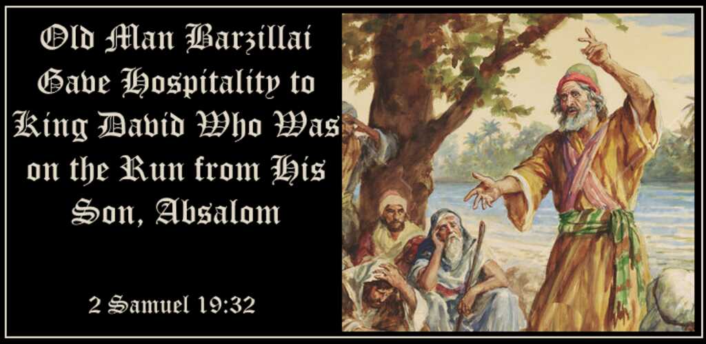David’s gratitude for Barzillai’s generosity. Upon returning to power, David showed gratitude and kindness for the support that he received from Barzillai: “31 Now Barzillai the Gileadite had come down from Rogelim; and he went on to the Jordan with the king to escort him over the Jordan. 32 Now Barzillai was very old, being eighty years old; and he had sustained the king while he stayed at Mahanaim, for he was a very great man. 33 The king said to Barzillai, ‘You cross over with me and I will sustain you in Jerusalem with me.’ 34 But Barzillai said to the king, ‘How long have I yet to live, that I should go up with the king to Jerusalem? 35 I am now eighty years old. Can I distinguish between good and bad? Or can your servant taste what I eat or what I drink? Or can I hear anymore the voice of singing men and women? Why then should your servant be an added burden to my lord the king? 36 Your servant would merely cross over the Jordan with the king. Why should the king compensate me with this reward? 37 Please let your servant return, that I may die in my own city near the grave of my father and my mother. However, here is your servant Chimham, let him cross over with my lord the king, and do for him what is good in your sight.’ 38 The king answered, ‘Chimham shall cross over with me, and I will do for him what is good in your sight; and whatever you require of me, I will do for you.’ 39 All the people crossed over the Jordan and the king crossed too. The king then kissed Barzillai and blessed him, and he returned to his place.” (2 Sam. 19:31-39). David wanted to thank Barzillai for providing for him when he fled from Absalom (2 Sam. 17:27) by having him to live with him in Jerusalem. Barzillai turned down the offer. But he allowed David to take his apparent son Chimham. Before his death, David made sure that all of Barzillai’s sons would be cared for: “But show kindness to the sons of Barzillai the Gileadite, and let them be among those who eat at your table; for they assisted me when I fled from Absalom your brother.” (1 Kgs. 2:7).