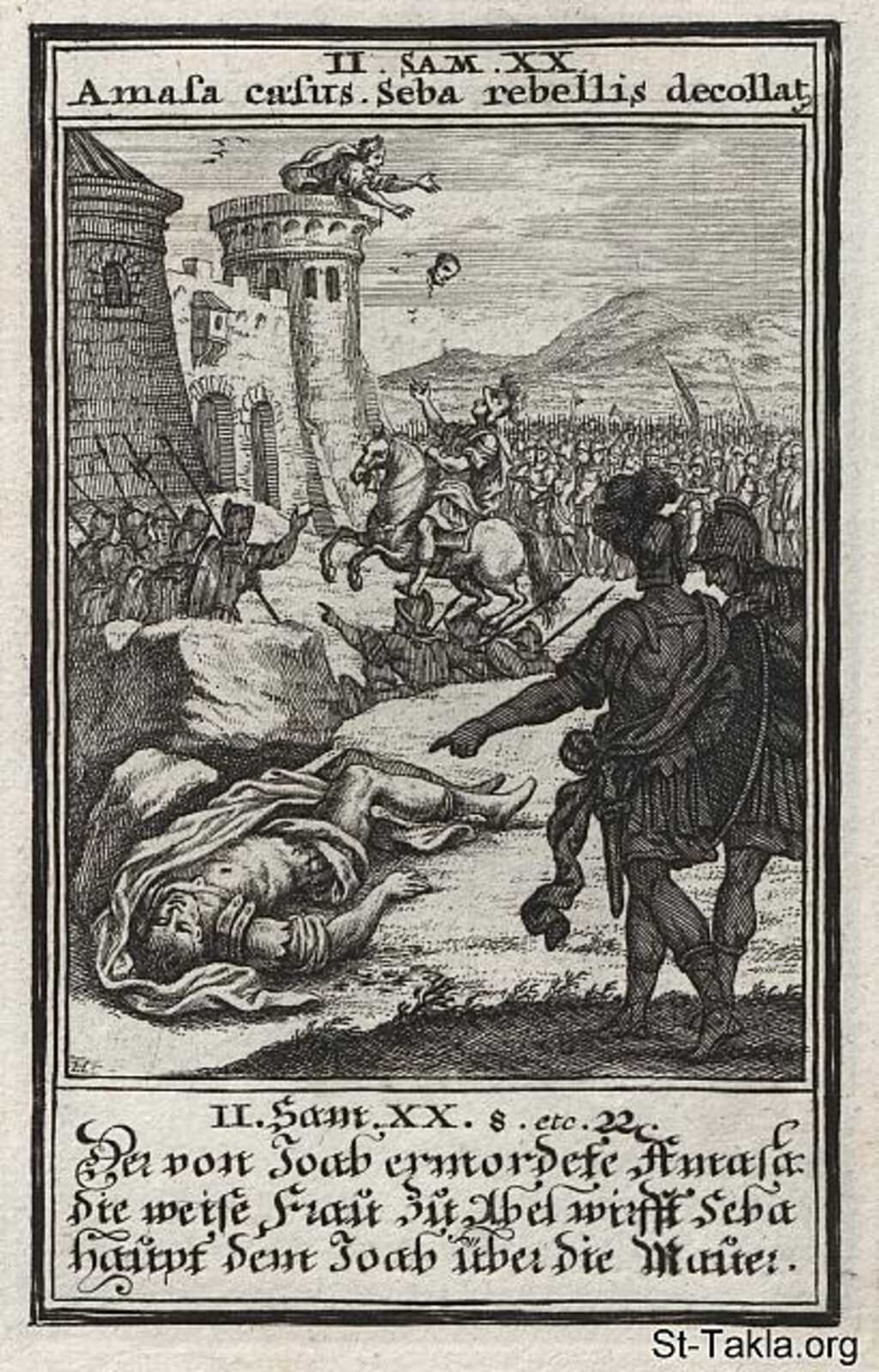 A woman from Abel Beth-maacah delivers Sheba and spares the city from destruction. In addition to violating God’s Word, Joab’s actions were about to cause countless innocent civilians to suffer. God then sent a wise woman to bring reason to Joab and the city: “16 Then a wise woman called from the city, ‘Hear, hear! Please tell Joab, ‘Come here that I may speak with you.’’ 17 So he approached her, and the woman said, ‘Are you Joab?’ And he answered, ‘I am.’ Then she said to him, ‘Listen to the words of your maidservant.’ And he answered, ‘I am listening.’ 18 Then she spoke, saying, ‘Formerly they used to say, ‘They will surely ask advice at Abel,’ and thus they ended the dispute. 19 I am of those who are peaceable and faithful in Israel. You are seeking to destroy a city, even a mother in Israel. Why would you swallow up the inheritance of the Lord?’ 20 Joab replied, ‘Far be it, far be it from me that I should swallow up or destroy! 21 Such is not the case. But a man from the hill country of Ephraim, Sheba the son of Bichri by name, has lifted up his hand against King David. Only hand him over, and I will depart from the city.’ And the woman said to Joab, ‘Behold, his head will be thrown to you over the wall.’ 22 Then the woman wisely came to all the people. And they cut off the head of Sheba the son of Bichri and threw it to Joab. So he blew the trumpet, and they were dispersed from the city, each to his tent. Joab also returned to the king at Jerusalem.” (2 Sam. 20:16-22). God would not have needed to send this woman if Joab had followed God’s law regarding warfare. Like Joab, many today ignore the wisdom of God’s Word and do what feels right to them. Joab was no better than Sheba for the suffering that they both created. Both men were guided by their flesh instead of God’s Word and the Spirit.