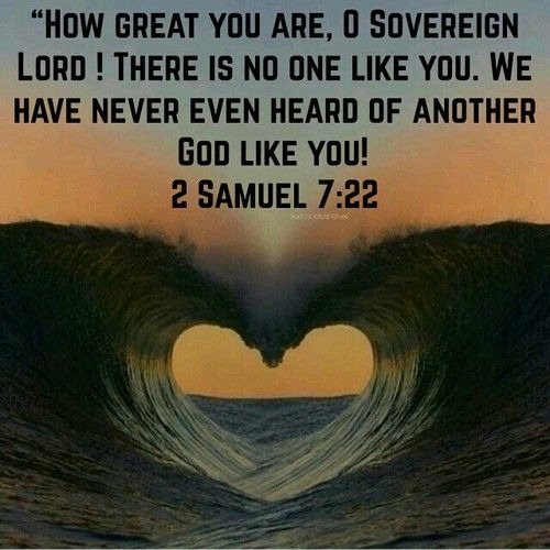 Give thanks for God’s great and unique character. David celebrated that there was no one like God who could see into the future (2 Sam. 7:19). We should also celebrate that our God is outside of time and can tell us the future with both knowledge and authority: “The LORD of hosts has sworn saying, ‘Surely, just as I have intended so it has happened, and just as I have planned so it will stand,”’ (Is. 14:24). “to do whatever Your hand and Your purpose predestined to occur.” (Acts 4:28). “Who is like You among the gods, O LORD? Who is like You, majestic in holiness, awesome in praises, working wonders?” (Ex. 15:11). “He said, ‘O LORD, the God of Israel, there is no God like You in heaven above or on earth beneath, keeping covenant and showing lovingkindness to Your servants who walk before You with all their heart,’” (1 Kgs. 8:23). ‘“For My thoughts are not your thoughts, nor are your ways My ways,’ declares the LORD. For as the heavens are higher than the earth, so are My ways higher than your ways and My thoughts than your thoughts.” (Is. 55:8-9). When God makes promises to you, He will keep them. But you can’t have faith in His promises if you have never studied them. Besides Jesus’ promises of salvation (Jo. 3:16), how many other promises do you know?