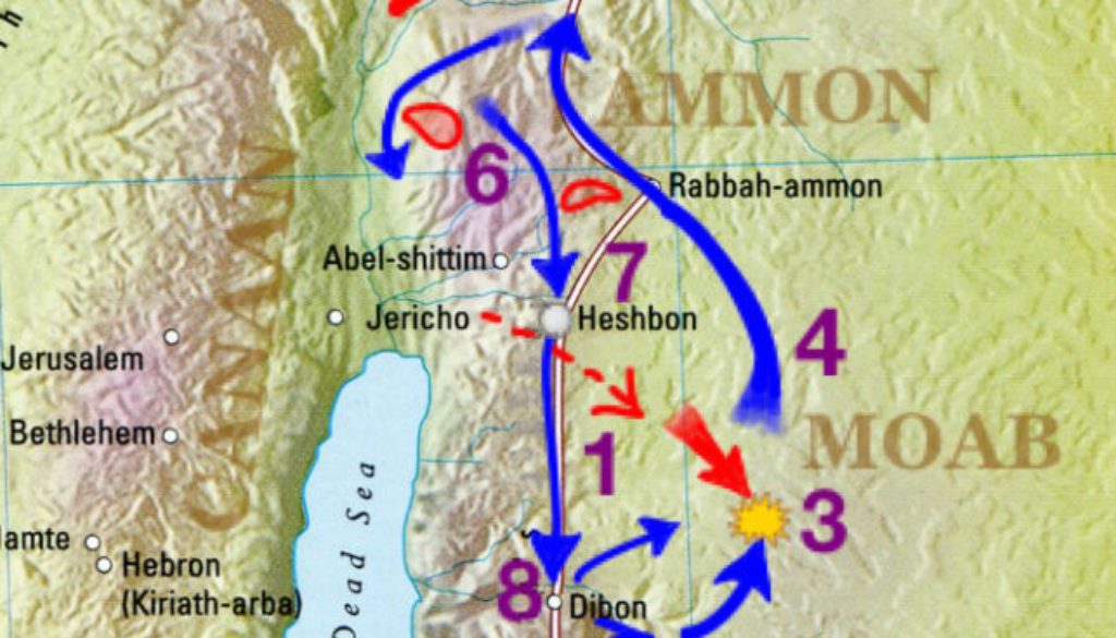 God’s destruction of the Ammonites. God’s protection of the Ammonites was also conditional. They elected to attack God’s people. By doing so, He removed the protection that they enjoyed. The Jews crossed over “Ar” on the border of Moab. “So it came about when all the men of war had finally perished from among the people, that the LORD spoke to me, saying, ‘Today you shall cross over Ar, the border of Moab.”’ (Dt. 2:16-18). God told the Jews not to harass or provoke the “sons of Ammon” because they were the sons of Lot. “When you come opposite the sons of Ammon, do not harass them nor provoke them, for I will not give you any of the land of the sons of Ammon as a possession, because I have given it to the sons of Lot as a possession.’” (Dt. 2:19). God had previously honored these undeserving people by clearing the land of the other inhabitants for them. “(It is also regarded as the land of the Rephaim, for Rephaim formerly lived in it, but the Ammonites call them Zamzummin, a people as great, numerous, and tall as the Anakim, but the LORD destroyed them before them. And they dispossessed them and settled in their place, just as He did for the sons of Esau, who live in Seir, when He destroyed the Horites from before them; they dispossessed them and settled in their place even to this day. And the Avvim, who lived in villages as far as Gaza, the Caphtorim who came from Caphtor, destroyed them and lived in their place.)” (Dt. 2:20-23). Yet, knowing their hearts were evil, God put fear into the Amorite king’s heart. “Arise, set out, and pass through the valley of Arnon. Look! I have given Sihon the Amorite, king of Heshbon, and his land into your hand; begin to take possession and contend with him in battle. This day I will begin to put the dread and fear of you upon the peoples everywhere under the heavens, who, when they hear the report of you, will tremble and be in anguish because of you.’” (Dt. 2:24-25). Like the King of Edom, Moses wrote a letter to request to peaceably cross the land of the Amorites: “So I sent messengers from the wilderness of Kedemoth to Sihon king of Heshbon with words of peace, saying, ‘Let me pass through your land, I will travel only on the highway; I will not turn aside to the right or to the left.” (Dt. 2:26-27; same Nu. 21:21-22). Moses only asked that they sell him food and give him water as the Jews passed by on foot. “You will sell me food for money so that I may eat, and give me water for money so that I may drink, only let me pass through on foot, just as the sons of Esau who live in Seir and the Moabites who live in Ar did for me, until I cross over the Jordan into the land which the LORD our God is giving to us.’” (Dt. 2:28-29). Yet, unlike the Edomite king, King Sihon, whose name means “sweeping away” attacked Israel (Nu. 21:23). Once he decided to attack, God hardened his heart so that His glory could be revealed: “But Sihon king of Heshbon was not willing for us to pass through his land; for the Lord your God hardened his spirit and made his heart obstinate, in order to deliver him into your hand, as he is today.” (Dt. 2:30). Through God’s hand, he was soundly defeated, and Israel took possession of his cities. “The LORD said to me, ‘See, I have begun to deliver Sihon and his land over to you. Begin to occupy, that you may possess his land. Then Sihon with all his people came out to meet us in battle at Jahaz. The LORD our God delivered him over to us, and we defeated him with his sons and all his people. So we captured all his cities at that time and utterly destroyed the men, women and children of every city. We left no survivor. We took only the animals as our booty and the spoil of the cities which we had captured. From Aroer which is on the edge of the valley of Arnon and from the city which is in the valley, even to Gilead, there was no city that was too high for us; the LORD our God delivered all over to us. Only you did not go near to the land of the sons of Ammon, all along the river Jabbok and the cities of the hill country, and wherever the LORD our God had commanded us.” (Dt. 2:31-37; Nu. 21:24-31; Jdgs. 11:19-22). God also promises to protect you from your enemies. “When my enemies turn back, They stumble and perish before You.” (Ps. 9:3; 56:9; 118:6; Ro. 8:31). If you are doing His will, you should fear no man or woman. Let God be your shield by taking refuge in Him. “Every word of God is tested; He is a shield to those who take refuge in Him.” (Prov. 30:5). If you have an enemy, have you taken refuge in Jesus?