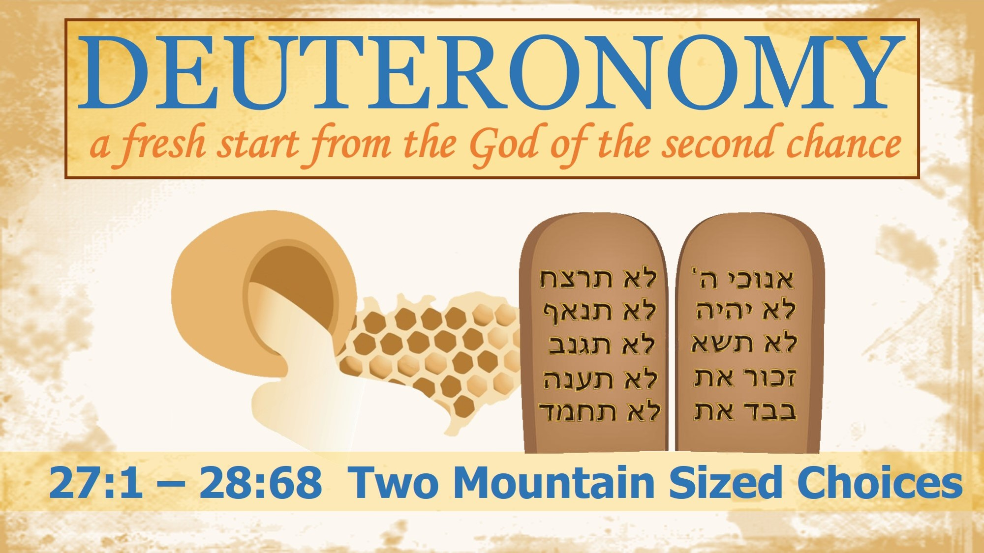 Introduction: After giving the Ten Commandments and the statutes that interpret these Commandments (Dt. 5-26), God required the Jews to ratify His covenant. His ratification requirements followed the format of the treaties used at that time between great powers and lesser nations under the control of the great power, called a “Suzerain / vassal treaty.” After setting out the terms and conditions of the covenant, it was common for a ceremony to exist to ratify the covenant. This ceremony involved witnesses, vows of compliance, and an agreement on the consequences that would follow in the event of a breach (Gen 15:9-11; Jer. 34:18-20).