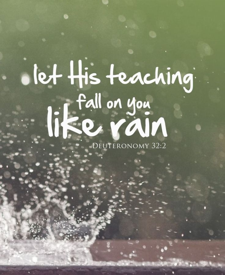 Let the Word of God be the “rain of life” to you. Moses advised that God’s teaching in the Torah had fallen from heaven to Earth with the same life-giving properties as rain: “2 Let my teaching drop as the rain, my speech distill as the dew, as the droplets on the fresh grass and as the showers on the herb.” (Dt. 32:2). Jesus was in fact the Word that became flesh (Jo. 1:1, 14). He was also the life-giving Manna that rained down from heaven (Jo. 6:30-35). He is also the light of the World (Jo. 8:12). Are you filling yourself with the Word of life that will guide you? Or, are you living off the dead things of the flesh?