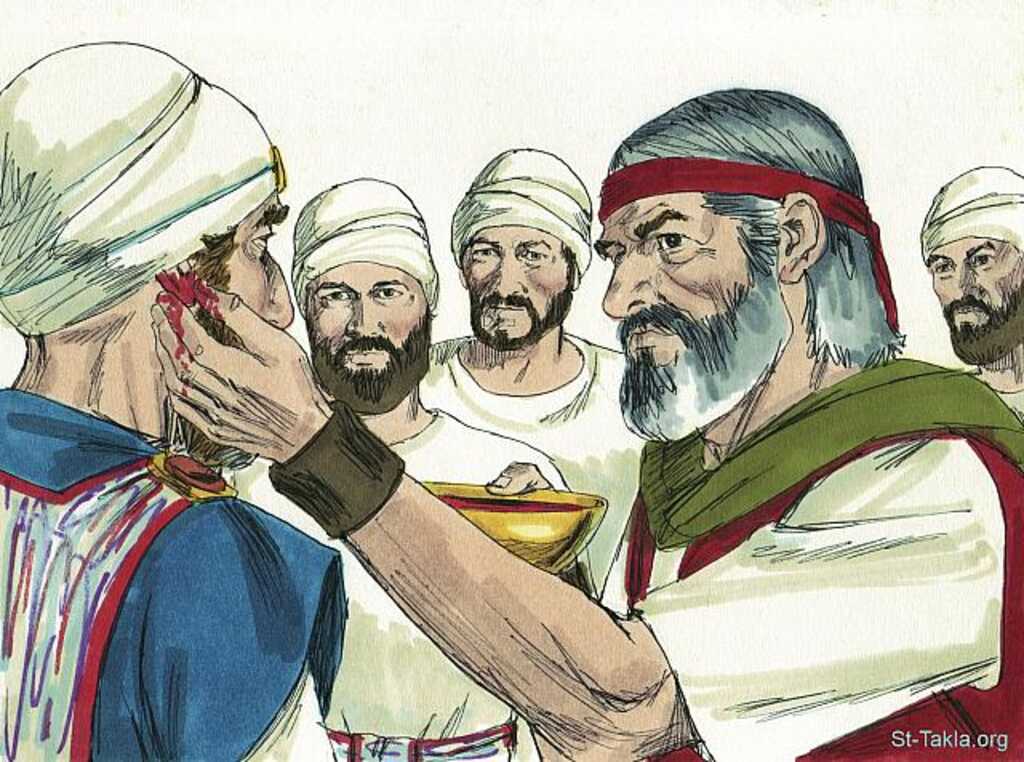 The blood added to the right ear lobe of the priest5