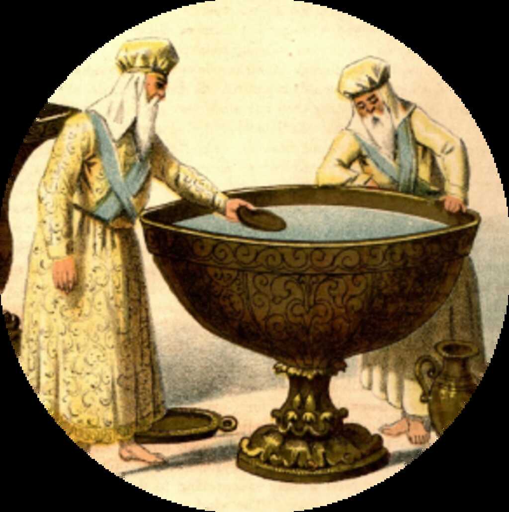 The bronze laver. After informing the priests when to approach Him and for what purpose, God advised the priests to only approach Him with a clean heart. He made this clear through the symbolism of the bronze laver, the “kiyyor”, that sat in front of the Tent of Meeting: “17 The Lord spoke to Moses, saying, 18 “You shall also make a laver of bronze, with its base of bronze, for washing; and you shall put it between the tent of meeting and the altar, and you shall put water in it. 19 Aaron and his sons shall wash their hands and their feet from it; 20 when they enter the tent of meeting, they shall wash with water, so that they will not die; or when they approach the altar to minister, by offering up in smoke a fire sacrifice to the Lord. 21 So they shall wash their hands and their feet, so that they will not die; and it shall be a perpetual statute for them, for Aaron and his descendants throughout their generations.” (Ex. 30:17-21). The bronze laver was the final fixture revealed for the Tabernacle. Because it is listed out of order with the golden altar of incense, God sought to highlight its role in connection with proper prayer. Like everything else, the bronze laver pointed to Christ and what He does for believers.