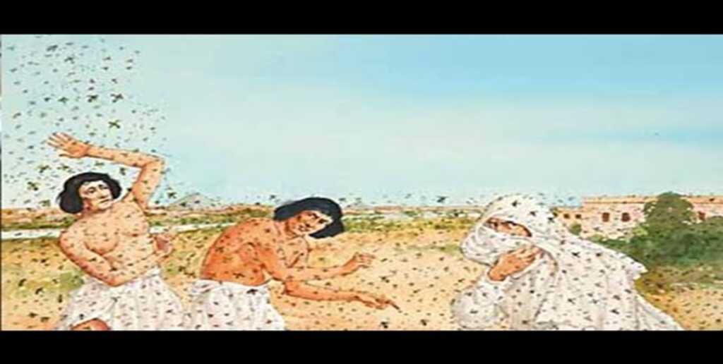 The plague of insects. After Pharaoh hardened his heart, God unleashed His third plague which consisted of swarms of insects: “16 Then the Lord said to Moses, ‘Say to Aaron, stretch out your staff and strike the dust of the earth, that it may become gnats through all the land of Egypt.’” 17 They did so; and Aaron stretched out his hand with his staff, and struck the dust of the earth, and there were gnats on man and beast. All the dust of the earth became gnats through all the land of Egypt. 18 The magicians tried with their secret arts to bring forth gnats, but they could not; so there were gnats on man and beast. 19 Then the magicians said to Pharaoh, ‘This is the finger of God.’ But Pharaoh’s heart was hardened, and he did not listen to them, as the Lord had said.” (Ex. 8:16-17). The word for gnats is “kinnim.” While the NASB and NIV translate this word as “gnats,” the King James Bible translates it as “lice”. Others translate the word as mosquitoes (First Fruits of Zion Torah Club (2013), Vol. 1 Unrolling the Scroll – Va’era, p.226). Whatever the correct translation, the text is clear that this plague hit animals as well as humans. The plague upon both the Egyptian animals and the people was an attack on their economy. It was also part of His gradually escalating judgments.