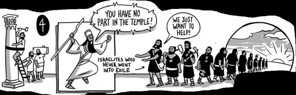 • God’s truth is more important than the unity of God’s people. Zerubbabel and Jeshua would have felt pressure to accept any help they could find to rebuild the Temple. They had limited economic resources. With help of the Samaritans, they might have quickly rebuilt the Temple. Believers are called upon to act with one accord as the Spirit leads the body (Ro. 12:5; 1 Cor. 10:17; 12:12; 12:20-21; Eph. 4:4). But unity must be based upon the love of God: “Beyond all these things put on love, which is the perfect bond of unity.” (Col. 3:14). Believers are frequently pulled off their walk when they are unequally yoked (2 Cor. 6:14). Zerubbabel and Jeshua correctly kept the Jews separate from the Samaritans. Even though this delayed the Temple rebuilding, it was worth it.