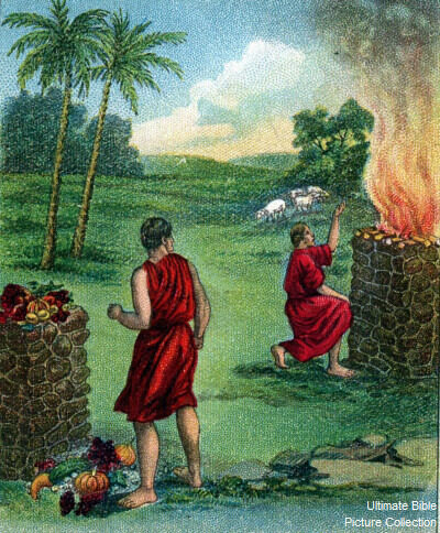 Abel’s faith through his sacrifice, and Cain’s pride through his sacrifice. God initially blessed Eve with two sons. The firstborn (the favored son) Cain tilled the ground like his father Adam. By contrast, Abel maintained flocks. Both showed that they tried to reconcile with God with their sinful nature with the first recorded sacrifice in the Bible. But while God rejected Cain’s sacrifice, He accepted Abel’s sacrifice: “1 Now the man had relations with his wife Eve, and she conceived and gave birth to Cain, and she said, ‘I have gotten a manchild with the help of the Lord.’ 2 Again, she gave birth to his brother Abel. And Abel was a keeper of flocks, but Cain was a tiller of the ground. 3 So it came about in the course of time that Cain brought an offering to the Lord of the fruit of the ground. 4 Abel, on his part also brought of the firstlings of his flock and of their fat portions. And the Lord had regard for Abel and for his offering; 5 but for Cain and for his offering He had no regard. So Cain became very angry and his countenance fell.” (Gen. 4:1-5). Eve praised God for the blessings of her first pregnancy (Ps. 139:14; Is. 44:2). But she offered no words of praise for her second son. She assumed that her firstborn son was the “seed” who would fulfill God’s prophecy against the devil(Gen. 3:15). “When Cain was born, Eve said, I have gotten a man from the Lord. Perhaps she thought that this was the promised seed. If so, she was woefully disappointed. Abel signifies vanity: when she thought she had the promised seed in Cain, whose name signifies possession, she was so taken up with him that another son was as vanity to her.” (Matthew Henry on Gen. 4).1 The name “Cain” has several translations. In this context, it mostly meant “here he is.” This interpretation is bolstered by the fact that she called him the “manchild,” not her son. Thus, she had words of praise for him alone. We are told nothing of Cain’s upbringing. But Eve no doubt raised him with pride about his presumed special purpose. Like the culture in Moses’ day, as the firstborn and as the one who followed in his father’s profession, he would have been treated as the favored child. But like Satan, his anointed position led to both his pride and his downfall: “Pride goes before destruction, and a haughty spirit before stumbling.” (Prov. 16:18). Abel no doubt was humbled to be the second born with no special purpose. He sacrificed the best of his flock in humble faith for God to accept it. (Heb. 11:4). By contrast, Cain offered the leftovers of his harvest out of pride that he needed to offer nothing more. God accepted Able’s faith-based sacrifice, and rejected Cain’s leftover offering. This caused Cain’s anger to burn. Even though Cain did not give the best of his harvest, his offering required more work than Abel’s sacrifice. He could not understand how God could favor his little brother’s messy sacrifice that required less effort. His confusion mirrors the confusion about mankind when it comes to the forgiveness of sin. Like Cain, many incorrectly assume that their works will save them.