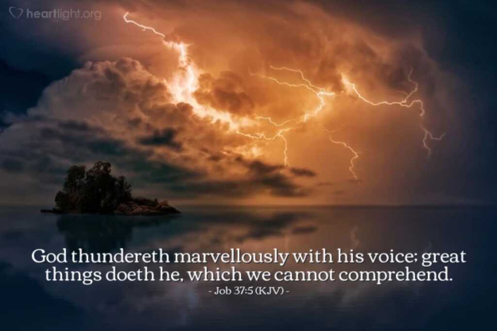 God’s voice carries power like thunder. Throughout the Bible, God’s voice was analogized to the power of thunder. In David’s song of deliverance, he stated: “The LORD thundered from heaven, and the Most High uttered His voice.” (2 Sam. 22:14). “The voice of the LORD is on the waters; the God of glory thunders, the LORD is over many waters.” (Ps. 29:3). Hannah also declared in her prayer: “Those who contend with the LORD will be terrified; against them He will thunder in the heavens, the LORD will judge the ends of the earth; and He will give strength to His king, and will exalt the horn of His anointed.” (1 Sam. 2:10). Jeremiah also declared: “When He utters His voice, there is a roar of waters in the heavens, and He makes the clouds ascend from the end of the earth. He makes lightning for the rain and brings out wind from His storehouses.” (Jer. 51:16). These persons all stood in reverent awe of God’s majesty.