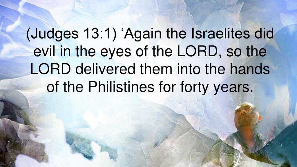 The Jews’ failure to seek God’s deliverance from their sins after 40 years of testing. After being rescued from civil strife by God’s ninth through eleventh deliverers (Ibzan, Elon and Abdon) (Jdgs. 12:8-15), the Jews once again returned to idolatry. To help the Jews to turn back to Him, God tested their hearts by placing them under the oppression of the Philistines for forty years: “1 Now the sons of Israel again did evil in the sight of the Lord, so that the Lord gave them into the hands of the Philistines forty years.” (Jdgs. 13:1). The “evil” that the Jews committed was to forget God and serve the Canaanite fertility gods Baal and Asheroth: “The sons of Israel did what was evil in the sight of the LORD, and forgot the LORD their God and served the Baals and the Asheroth.” (Jdgs. 3:7; 2:11-13; Dt. 31:16). The “forty” years of oppression symbolized God’s testing (cf., Jdgs. 3:4; Dt. 8:2; Ex. 34:28; Lk. 4:2). He frequently tests a believer’s heart to show where it is evil (Jer. 17:10; 20:12). What made this period of testing unique in the book of Judges was the failure of the Jews to turn back to God and cry out for deliverance. The Jews previously cried out for help a total of six times. First, after their initial disobedience following Joshua’s death, they cried out from the pain of their sins, and God brought them Othniel (Jdgs. 3:9). Second, following Othniel’s death, they sinned again cried out from the pain of their sins. He then brought them Ehud (Jdgs. 3:15). Third, following Ehud’s death, they sinned and cried out a third time. He then sent Deborah and Barak as joint delivers (Jdgs. 4:3-8). Fourth, following their deaths, they sinned and cried out a fourth time. He then sent Gideon (Jdgs. 6:6-14). Fifth, following the deaths of Tola and Jair, they sinned and cried out a fifth time. But He rejected their insincere cry (Jdgs. 10:10). Sixth, after they cried out again (yet without a change in behavior), He empowered the Jews’ appointed pagan deliverer Jephthah (Jdgs. 15; 11:29). Six is the number representing mankind. It is incomplete. The Jews had simply given up on crying out for help. God then gave them Samson as an incomplete and flawed final deliverer. He gave them Samson to demonstrate their need for Him to save them. They could not save themselves. Their final cry for help (which would come later) would bring the true Messiah, Jesus Christ. He is the one and only true deliverer of mankind.