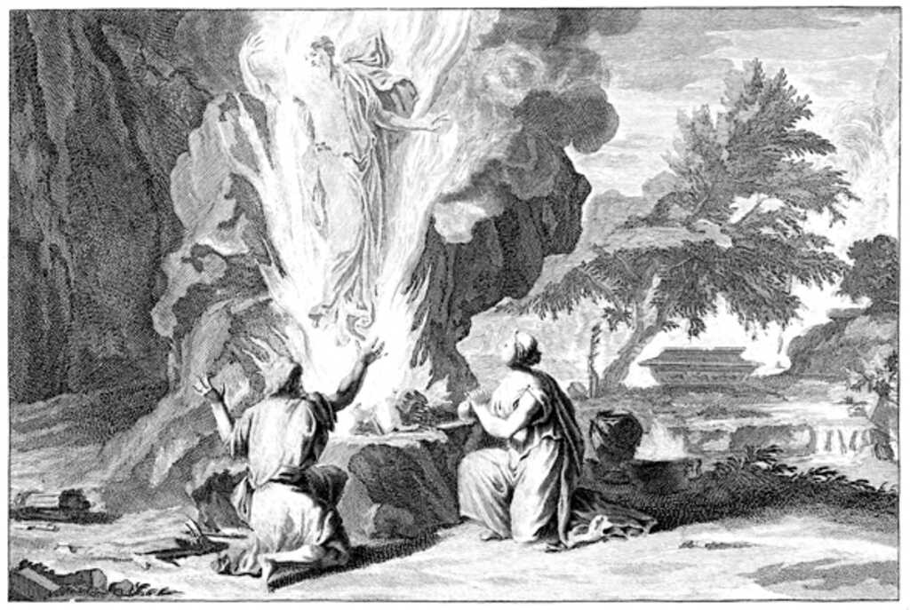 Manoah’s fear of dying after meeting Jesus. After realizing that He had met God, Manoah feared for his life. Yet, his wife told him to have faith: “21 Now the angel of the Lord did not appear to Manoah or his wife again. Then Manoah knew that he was the angel of the Lord. 22 So Manoah said to his wife, ‘We will surely die, for we have seen God.’ 23 But his wife said to him, ‘If the Lord had desired to kill us, He would not have accepted a burnt offering and a grain offering from our hands, nor would He have shown us all these things, nor would He have let us hear things like this at this time.’” (Jdgs. 13:21-23). Manoah knew the Scriptures. He could not see God and live: “But He said, ‘You cannot see My face, for no man can see Me and live!”’ (Ex. 33:20). The reason he did not die was because he in fact met Jesus: “No one has seen God at any time; the only begotten God who is in the bosom of the Father, He has explained Him.” (Jo. 1:18). Manoah’s name meant “rest.” Jesus would fulfill and give meaning to his name.