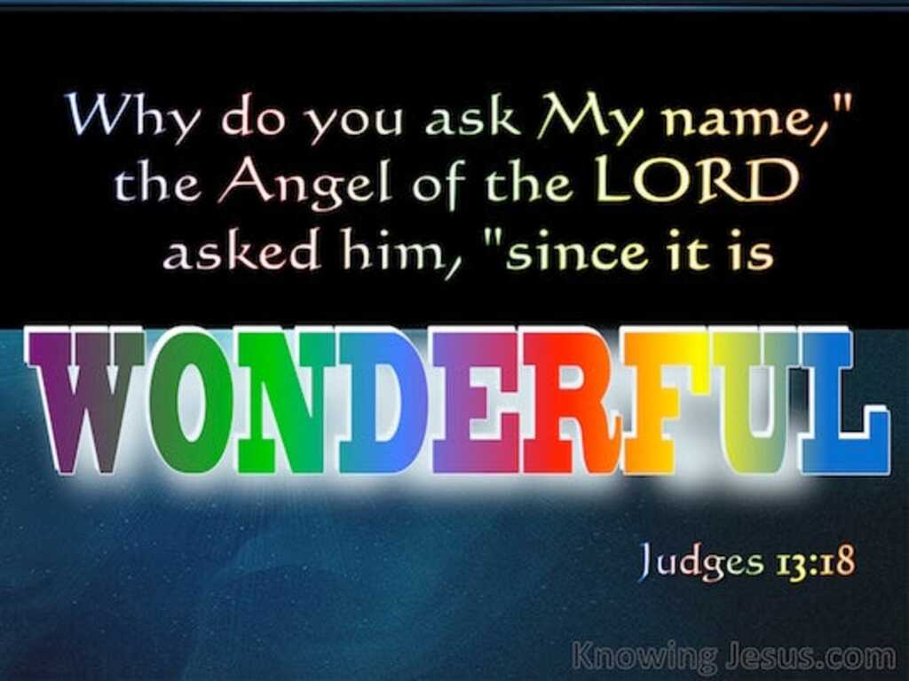 God’s messenger’s name was “Wonderful”. As part of his failures of faith, Manoah demanded that God’s messenger dine with him and reveal his name, as if he were an equal man. He did not yet realize that he was speaking directly with God: “15 Then Manoah said to the angel of the Lord, ‘Please let us detain you so that we may prepare a young goat for you.’ 16 The angel of the Lord said to Manoah, ‘Though you detain me, I will not eat your food, but if you prepare a burnt offering, then offer it to the Lord.’ For Manoah did not know that he was the angel of the Lord. 17 Manoah said to the angel of the Lord, ‘What is your name, so that when your words come to pass, we may honor you?’ 18 But the angel of the Lord said to him, ‘Why do you ask my name, seeing it is wonderful?’” (Jdgs. 13:15-17). The term “wonderful” was not used an adjective. It was a noun that symbolized His power to perform miracles. The term “wonderful” referred to the wondrous miracles that only God could perform: “The LORD said to Moses, ‘When you go back to Egypt see that you perform before Pharaoh all the wonders which I have put in your power; but I will harden his heart so that he will not let the people go.”’ (Ex. 4:21). “But I will harden Pharaoh’s heart that I may multiply My signs and My wonders in the land of Egypt.” (Ex. 7:3). “Moses and Aaron performed all these wonders before Pharaoh; yet the LORD hardened Pharaoh’s heart, and he did not let the sons of Israel go out of his land.” (Ex. 11:11). “Who is like You among the gods, O LORD? Who is like You, majestic in holiness, awesome in praises, working wonders?” (Ex. 15:11). “Who does great and unsearchable things, wonders without number.” (Job 5:9). “Who does great things, unfathomable, and wondrous works without number.” (Job 9:10). “Many, O LORD my God, are the wonders which You have done, and Your thoughts toward us; there is none to compare with You. If I would declare and speak of them, they would be too numerous to count.” (Ps. 40:5). “To Him who alone does great wonders, for His lovingkindness is everlasting;” (Ps. 136:4). Manoah’s failure to understand the messenger’s true identity foreshadowed mankind’s failure to realize Jesus’ identity.
