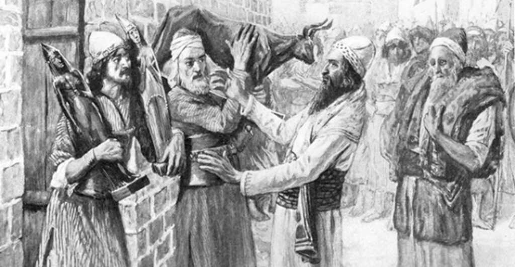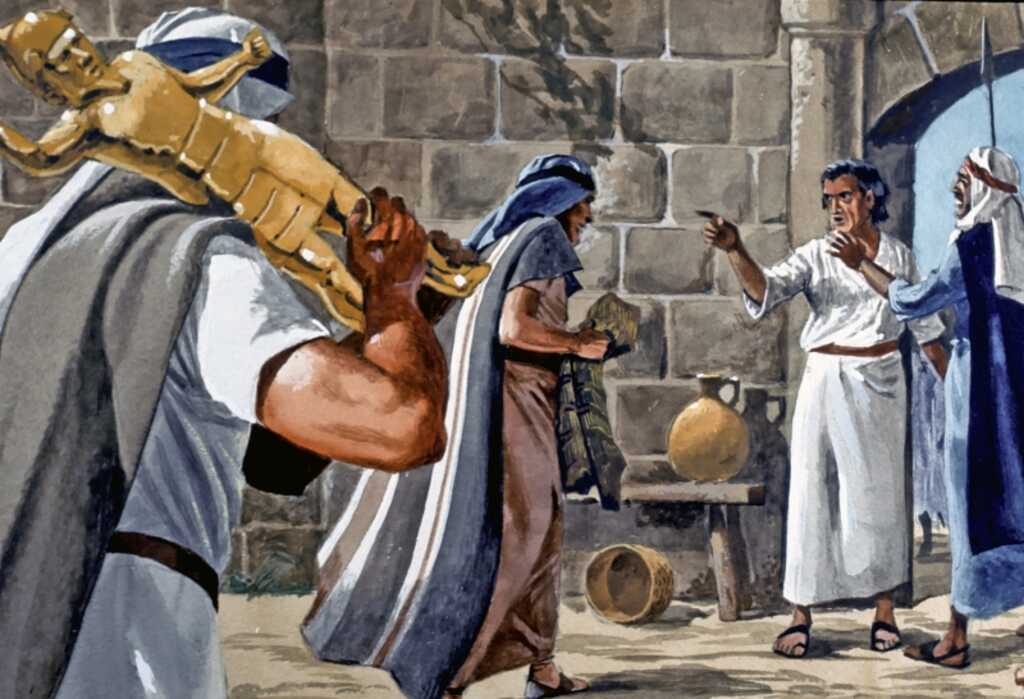 Micah’s desperate attempt to recover his idols and the Danites’ extortion against him. Micah eventually caught up to the Danites, who would have moved slowly with their woman, children, and livestock. Yet, they extorted Micah with threats to both him and his household if he did not abandoned his idols and priest to them: “21 Then they turned and departed, and put the little ones and the livestock and the valuables in front of them. 22 When they had gone some distance from the house of Micah, the men who were in the houses near Micah’s house assembled and overtook the sons of Dan. 23 They cried to the sons of Dan, who turned around and said to Micah, ‘What is the matter with you, that you have assembled together?’ 24 He said, ‘You have taken away my gods which I made, and the priest, and have gone away, and what do I have besides? So how can you say to me, ‘What is the matter with you?’ 25 The sons of Dan said to him, ‘Do not let your voice be heard among us, or else fierce men will fall upon you and you will lose your life, with the lives of your household.’ 26 So the sons of Dan went on their way; and when Micah saw that they were too strong for him, he turned and went back to his house.” (Jdgs. 18:21-26). Micah was desperate for his false idols. He asked the same foolish question that Laban asked of Jacob: “Now you have indeed gone away because you longed greatly for your father’s house; but why did you steal my gods?” (Gen. 31:30). But the Danites equally coveted the false idols that they had stolen. The idols controlled each of them. They were both blinded by their covetousness: “Those who fashion a graven image are all of them futile, and their precious things are of no profit; even their own witnesses fail to see or know, so that they will be put to shame.” (Is. 44:9). Only the Danites’ threats of death to Micah and his family caused him to leave in sadness.