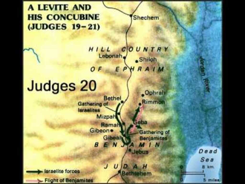 The investigation of the 11 tribes into the Levite’s allegations. After the Levite cut up the body of his concubine and sent a piece to each of the 12 tribes, 11 tribal elders assembled together “as one man to the Lord” to investigate the crime: “1 Then all the sons of Israel from Dan to Beersheba, including the land of Gilead, came out, and the congregation assembled as one man to the Lord at Mizpah. 2 The chiefs of all the people, even of all the tribes of Israel, took their stand in the assembly of the people of God, 400,000 foot soldiers who drew the sword. 3 (Now the sons of Benjamin heard that the sons of Israel had gone up to Mizpah.) And the sons of Israel said, ‘Tell us, how did this wickedness take place?’” (Jdgs. 20:1-3). The gathering happened in a town called Mizpah, located between Judah and Benjamin (Josh. 15:38; 18:26). At the time, the Jews kept the ark in the nearby city of Shiloh. Before Jerusalem was retaken by David, the larger city of Mizpah was used for many of the large religious gatherings of the tribes (1 Sam. 7:5; 10:17). The reference to “from Dan to Beersheba” and “the Land of Gilead” (Jdgs. 20:1) is an Old Testament merism that was used to convey all the cities from Dan in the far north to Beersheba in the far south and the tribes to the east in Jordan (1 Sam. 3:20; 2 Sam. 24:2; 2 Chr. 30:5). This gathering was similar to the gathering of the nine and one half tribes in Shiloh in Joshua’s day when they perceived that the two and a half tribes in modern day Jordan had built an unauthorized altar outside the Promised Land (Josh. 22:10-12). The message that runs through both accounts is that alleged sin must always be investigated. If it is ignored, it will spread and grow like cancer. By bringing together 400,000 soldiers, the Levite had brought together more Jews than any other leader since Joshua. But the text later implies that the Benjamites were not present. Presumably, they received the body part of the deceased concubine and conducted an investigation that was limited to speaking with only the wrongdoers. Thus, instead of having 12 tribes, the Jews had only 11. In the Bible, the number 11 symbolizes chaos. It was an 11-day journey from Mount Horeb to Kadesh-barnea, where the Jews rebelled against God (Dt. 1:2-4). Chaos also broke out amongst the disciples when Judas abandoned Jesus and only 11 disciples remained. The message is that the Body of Christ must speak in unity against sin (Phil. 2:2). If not, the devil will cause chaos.