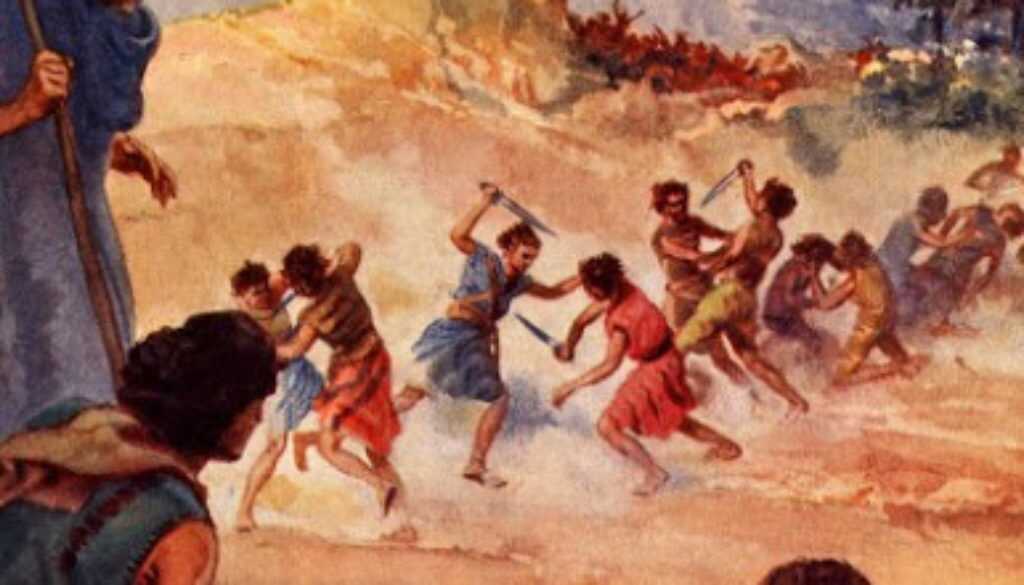 The Jews’ fasting, burnt offerings, and peace offerings. After losing 40,000 soldiers, the Jews realized that something was not right. At that time, they repented and presented offerings for their sins. Only after they had addressed their own sins did God give them the final approval to attack: “26 Then all the sons of Israel and all the people went up and came to Bethel and wept; thus they remained there before the Lord and fasted that day until evening. And they offered burnt offerings and peace offerings before the Lord. 27 The sons of Israel inquired of the Lord (for the ark of the covenant of God was there in those days, 28 and Phinehas the son of Eleazar, Aaron’s son, stood before it to minister in those days), saying, ‘Shall I yet again go out to battle against the sons of my brother Benjamin, or shall I cease?’ And the Lord said, ‘Go up, for tomorrow I will deliver them into your hand.’” (Jdgs. 20:26-28). In the Bible, the number 40 symbolizes testing. The loss of 40,000 troops over two days represented a test. God wanted to see if the Jews would trust Him in the time of their loss. The 40,000 troops also represented a 10th of the total number of troops. They correlated with the exact number of troops that the Jews had set aside to provide for their needs instead of trusting God (Jdgs. 20:10). Although the Jews had acted with the correct intentions, they did not act in the correct manner. Only after they repented of their sins could God use them to judge the Benjamites.