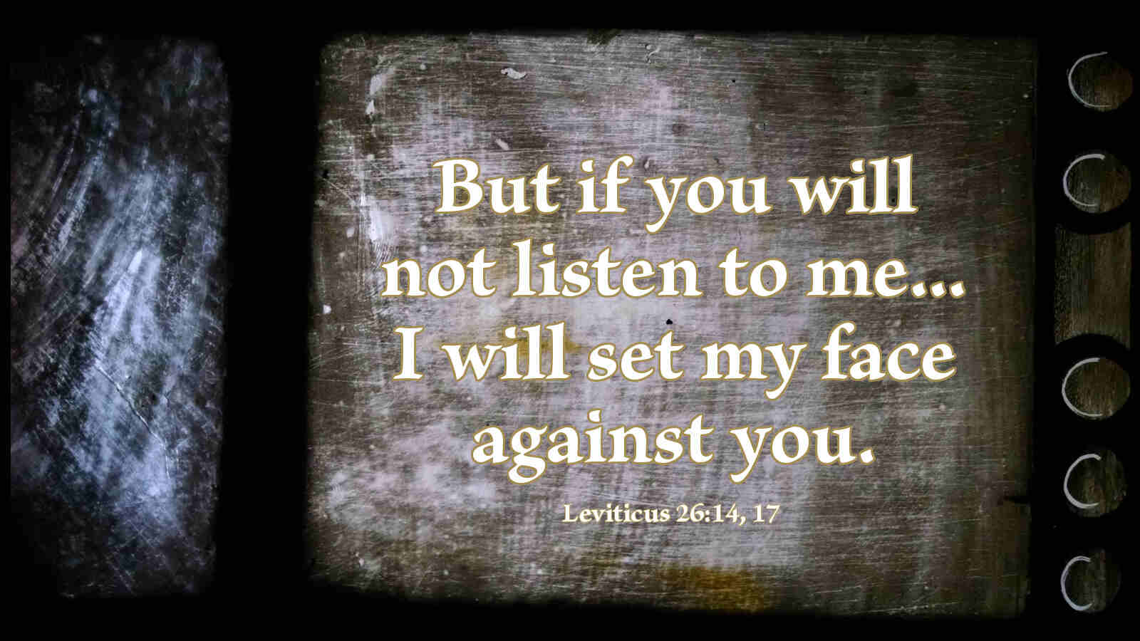 Find shelter in God from the enemy’s attacks. In Leviticus 26, God also lists 14 curses that can happen to either an individual or a nation when they stand outside the protections of His Covenant in the face of the enemy’s attacks. These include: (1) fear; (2) defeat; (3) brokenness; (4) failure; (5) torment; (6) dissatisfaction; (7) self-destruction; (8) desperation; (9) isolation; (10) barrenness; (11) exile; (12) hopeless; (13) destruction; and (14) atrophy.