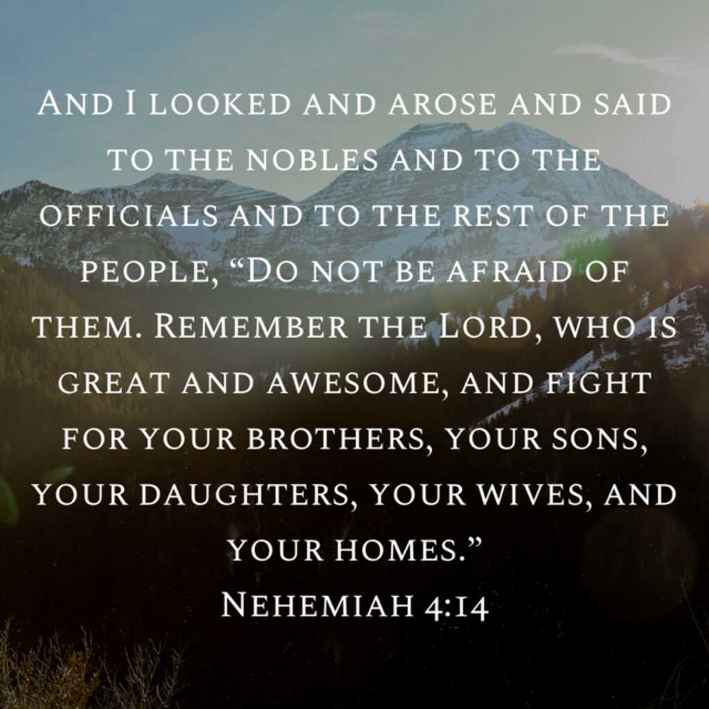 Encourage others to have faith in the face of adversity. Nehemiah previously responded to similar attacks by encouraging the Jews to have faith: ‘“The God of heaven will make us successful;”’ (Neh. 2:20). Here, he again encouraged the Jews to not be afraid and to keep their thoughts on God. They would also need to be ready to fight with one accord: “‘Do not be afraid of them; remember the Lord who is great and awesome, and fight for your brothers, your sons, your daughters, your wives, and your houses.’” (Neh. 4:11-14). Believers are commanded to encourage each other: “Therefore encourage one another and build up one another, just as you also are doing.” (1 Thess. 5:11). “Let no unwholesome word proceed from your mouth, but only such a word as is good for edification according to the need of the moment, so that it will give grace to those who hear.” (Eph. 4:29). When you encourage others to have faith, you give them the strength to fight on: “I, even I, am He who comforts you. Who are you that you are afraid of man who dies and of the son of man who is made like grass,” (Is. 51:12). David was a hero of the faith because he encouraged others not to fear their enemies: “The LORD is for me; I will not fear; what can man do to me?” (Ps. 118:6; 56:4; Heb. 13:6). Paul also encouraged believers to trust in God’s power: “What then shall we say to these things? If God is for us, who is against us?” (Ro. 8:31). Are you encouraging others who feel depressed or defeated? Do you have others to encourage you to fight on?