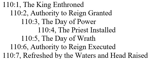 First, David quoted Yahweh as telling David’s Lord to “Sit at My right hand.” Jesus, Peter, and the author of Hebrews all quoted this verse to establish Jesus’ divine authority. Second, David proclaimed that the Messiah will “Rule in the midst of Your enemies.”’ Jesus is the sovereign ruler over all creation. Third, David declared that the Messiah’s “people will volunteer freely on the day of Your power; in holy splendor.” Jesus’ followers will freely submit to their Master. Fourth, David revealed that the Messiah will also be ‘“a priest forever according to the order of Melchizedek.’” As High Priest, Jesus provides the means for your atonement, the assurance of your salvation, and He acts as your intercessor. Fifth, David promised that “He will shatter kings in the day of His wrath.” Jesus will also deliver you from evil. Sixth, David also foretold of Jesus’ just and righteous reign: “He will judge among the nations,” He will defeat evil, and His believers will dwell in peace. Finally, after the Messiah’s suffering, David says that: “He will lift up His head.” After Jesus comes again to judge evil, He will receive the glory as King of Kings.