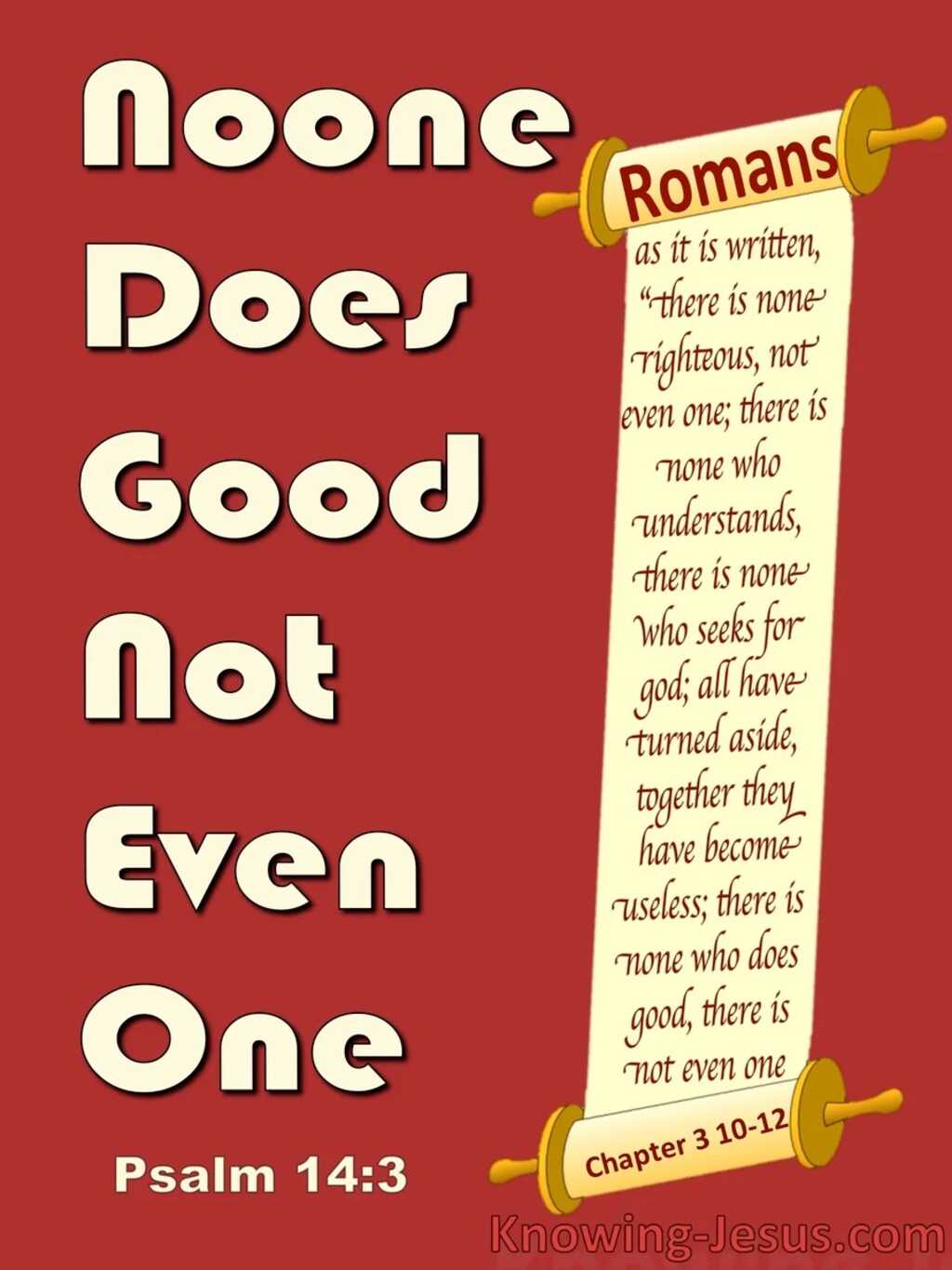 David professed that all mankind is sinful in its fallen state. In addition to failing to submit to God and seek Him out, a fool also fails to acknowledge his or her sinful nature: “3 They have all turned aside, together they are corrupt; there is no one who does good, not even one.” (Ps. 14:3). This is a central theme of the Bible. It also distinguishes the Judeo-Christian faith from all other religions. All have fallen short and are in need of redemption. In the Old Testament, that happened through animal sacrifices. In the New Testament, atonement is only possible through faith in Jesus’ sacrifice at the cross.