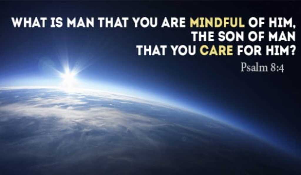 Praise God that He created the universe out of love for mankind. The psalms are filled with similar claims of astonishment that God would concern Himself with sinners: “LORD, what is man, that You look after him? Or a son of man, that You think of him?” (Ps. 144:3). During his time of unexplainable suffering, Job questioned whether God does in fact love mankind: “What is man that You exalt him, and that You are concerned about him,” (Job 7:17). David and later the author of the book of Hebrews asked the same question to draw the opposite conclusion - - God does love mankind more than we can understand: “But someone has testified somewhere, saying, ‘What is man, that you think of him? Or a son of man, that you are concerned about Him?”’ (Heb. 2:6). The fact that He would send His only begotten son to die for us is proof of His love (Jo. 3:16). When you see beauty in nature, do you stop and praise God for His incredible creation?